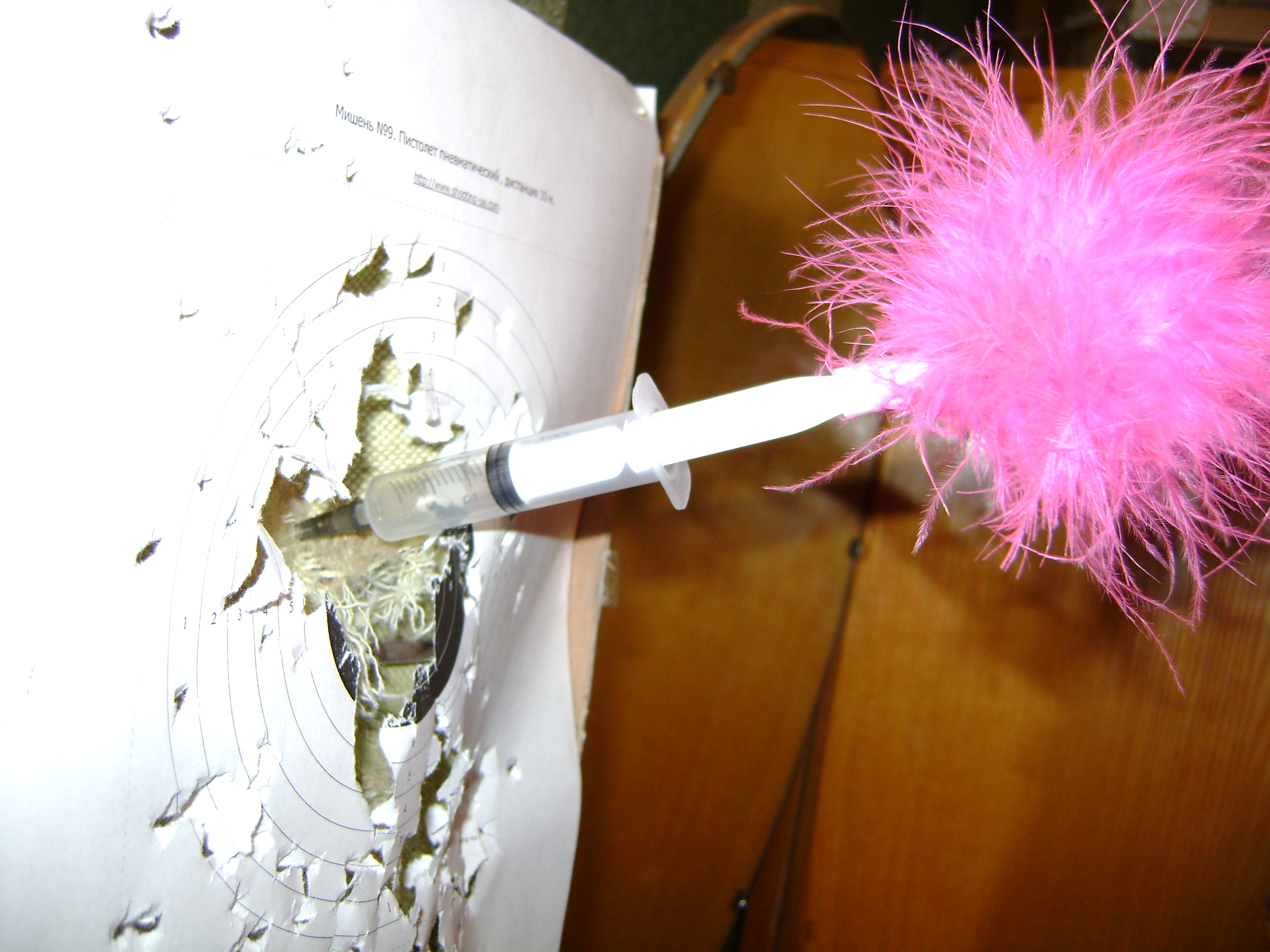 метал скальпели в дверь. один сломался у начала лезвия. Решил сделать другую штуку - дарт из шрица. Стабилизатор из пушистой штуки с карандаша. http://l.lifecost.tv//5i